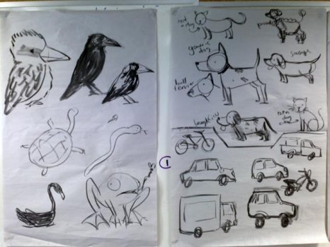 Previous Image Next Image IMG_1600 quick reference sketches for drawing birds, cats, dogs, frogs, transportation PIAF mural