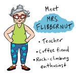 Mrs Flibbernut, Chegwin’s tutor, was originally called Mrs Saxon. In her first iteration she wasn’t interested in rock climbing, so she was a larger lady (I based her on Miriam Margoyles).