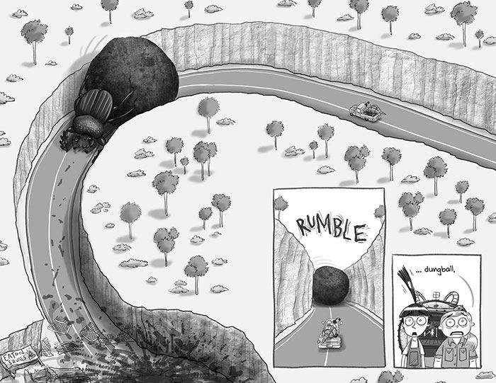Sally Tinker – creator of Brobot and the world’s foremost inventor under the age of twelve – is back. Sally has built a machine capable of enlarging any object, but when she tries resizing a slice of pizza she accidentally enlarges a dung beetle to scary proportions. As the hungry beetle rolls itself a dung ball large enough to crush an entire town, Sally races to shrink down the monster, before it’s too late.